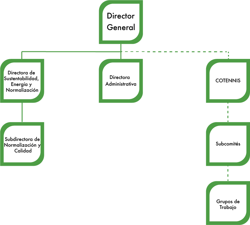 Presidente del COTENNISDirector GeneralDirectora de Sustentabilidad, Energía y NormalizaciónDirectora AdministrativaSubdirectora de Normalización y CalidadSubcomitésGrupos de Trabajo